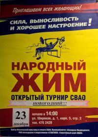 23 декабря 2018 года в 14.00 в спортивном клубе "ИВАН" состоится Новогодний народный жим. Приглашаем всех желающих!