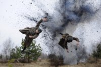 Работа с пневно-подкидной доской требует определенных навыков и опыта, часто используется при съемке трюковых сцен: отлеты от взрывов, перелеты через препятствия, и т.п.
